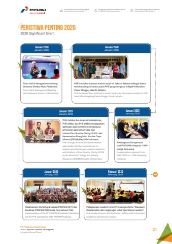 Tata Kelola Perusahaan yang BaikGood Corporate GovernanceTanggung Jawab Sosial PerusahaanCorporate Social ResponsibilityLaporan Keuangan KonsolidasianConsolidated Financial ReportPT Pertamina Hulu Energi2020 Laporan Tahunan TerintegrasiIntegrated Annual Report 21Town Hall & Management Meetingbersama Direktur Hulu Pertamina.Town Hall & Management Meeting with Upstream Director of Pertamina.Pelaksanaan Workshop Evaluasi PROPER 2019 dan Roadmap PROPER 2020 Anak Perusahaan PHE.Implementation of the 2019 PROPER Evaluation Workshop and the PHE subsidiaries 2020 PROPER Roadmap.Pelaksanaan Leaders Forum PHE dengan tema %u201cWawasan Keselamatan dan Lingkungan untuk Operational Leaders.%u2019%u2019PHE Leaders Forum with the theme %u201cSafety and Environment Insight for Operational Leaders.Pembayaran Kompensasi dari PHE ONWJ kepada 1.999 warga Karawang.Compensation payment from PHE ONWJ to 1.999 Karawang residents.PHE serahkan bantuan korban banjir di Jakarta Selatan sebagai lokasi terdekat dengan kantor pusat PHE yang menyasar wilayah Kelurahan Pasar Minggu, Jakarta Selatan.PHE handover flood relief aid in South Jakarta as the closest location to PHE head office targeting Pasar Minggu, South Jakarta.PHE melalui dua anak perusahaannya, PHE ONWJ dan PHE OSES mendapatkan apresiasi atas komitmen mendukung penurunan gas rumah kaca dan inisiasi Zero Routine Flaring 20230 oleh Kementerian Energi dan Sumber Daya Mineral (ESDM) Republik IndonesiaPHE through its two subsidiaries receive appreciation for their commitment to support greenhouse gas emission reduction and initiation of Zero Routine Flaring 20230 by the Ministry of Energy and Mineral Resources (ESDM) Republic of Indonesia.Januari 2020January, 2020Januari 2020January, 2020Februari 2020February, 2020Januari 2020January, 2020Januari 2020January, 2020Januari 2020January 2020PERISTIWA PENTING 20202020 Significant Event