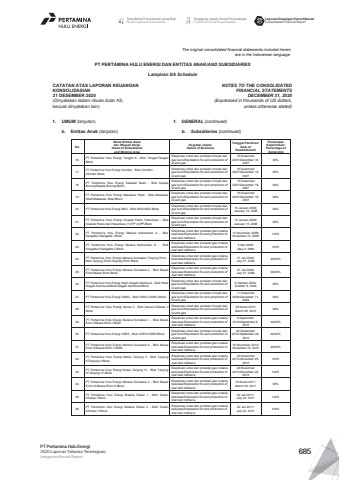 The original consolidated financial statements included hereinare in the Indonesian language.PT PERTAMINA HULU ENERGI DAN ENTITAS ANAK/AND SUBSIDIARIES Lampiran 5/5 ScheduleCATATAN ATAS LAPORAN KEUANGANKONSOLIDASIAN31 DESEMBER 2020(Dinyatakan dalam ribuan dolar AS, kecuali dinyatakan lain)NOTES TO THE CONSOLIDATEDFINANCIAL STATEMENTSDECEMBER 31, 2020(Expressed in thousands of US dollars,unless otherwise stated)1. UMUM (lanjutan) 1. GENERAL (continued)b. Entitas Anak (lanjutan) b. Subsidiaries (continued)No.Nama Entitas Anakdan Wilayah Kerja/Name of Subsidiariesand Working AreaKegiatan Usaha/Nature of BusinessTanggal Pendirian/Date ofEstablishmentPersentaseKepemilikan/Percentage ofOwnership16. PT Pertamina Hulu Energi Tengah K - Blok Tengah/TengahBlockEksplorasi untuk dan produksi minyak dangas bumi/Exploration for and production ofoil and gas18 Desember2007/December 18,200799%17. PT Pertamina Hulu Energi Corridor - Blok Corridor/Corridor BlockEksplorasi untuk dan produksi minyak dangas bumi/Exploration for and production ofoil and gas18 Desember2007/December 18,200799%18. PT Pertamina Hulu Energi Salawati Basin - Blok KepalaBurung/Kepala Burung BlockEksplorasi untuk dan produksi minyak dangas bumi/Exploration for and production ofoil and gas18 Desember2007/December 18,200799%19. PT Pertamina Hulu Energi Makassar Strait - Blok MakassarStrait/Makassar Strait BlockEksplorasi untuk dan produksi minyak dangas bumi/Exploration for and production ofoil and gas18 Desember2007/December 18,200799%20. PT Pertamina Hulu Energi NSO - Blok NSO/NSO BlockEksplorasi untuk dan produksi minyak dangas bumi/Exploration for and production ofoil and gas15 Januari 2008/January 15, 2008 99%21. PT Pertamina Hulu Energi Coastal Plains Pekanbaru - BlokCoastal Plains dan Pekanbaru (%u201cCPP%u201d)/CPP BlockEksplorasi untuk dan produksi minyak dangas bumi/Exploration for and production ofoil and gas15 Januari 2008/January 15, 2008 99%22. PT Pertamina Hulu Energi Metana Kalimantan A - BlokSangatta I/Sangatta I BlockEksplorasi untuk dan produksi gas metanabatubara/Exploration for and production ofcoal bed methane12 November 2008/November 12, 2008 100%23. PT Pertamina Hulu Energi Metana Kalimantan B - BlokSangatta II/Sangatta II BlockEksplorasi untuk dan produksi gas metanabatubara/Exploration for and production ofcoal bed methane5 Mei 2009/May 5, 2009 100%24. PT Pertamina Hulu Energi Metana Sumatera Tanjung Enim -Blok Tanjung Enim/Tanjung Enim BlockEksplorasi untuk dan produksi gas metanabatubara/Exploration for and production ofcoal bed methane27 Juli 2009/July 27, 2009 99,90%25. PT Pertamina Hulu Energi Metana Sumatera 2 - Blok MuaraEnim/Muara Enim BlockEksplorasi untuk dan produksi gas metanabatubara/Exploration for and production ofcoal bed methane27 Juli 2009/July 27, 2009 99,90%26. PT Pertamina Hulu Energi West Glagah Kambuna - Blok WestGlagah Kambuna/West Glagah Kambuna BlockEksplorasi untuk dan produksi minyak dangas bumi/Exploration for and production ofoil and gas6 Oktober 2009/October 6, 2009 99%27. PT Pertamina Hulu Energi ONWJ - Blok ONWJ/ONWJ BlockEksplorasi untuk dan produksi minyak dangas bumi/Exploration for and production ofoil and gas11 Desember2009/December 11,200999%28. PT Pertamina Hulu Energi Semai II - Blok Semai II/Semai IIBlockEksplorasi untuk dan produksi minyak dangas bumi/Exploration for and production ofoil and gas26 Maret 2010/March 26, 2010 99%29. PT Pertamina Hulu Energi Metana Sumatera 1 - Blok MuaraEnim I/Muara Enim I BlockEksplorasi untuk dan produksi gas metanabatubara/Exploration for and production ofcoal bed methane9 September2010/September 9,201099,90%30. PT Pertamina Hulu Energi OSES - Blok OSES/OSES BlockEksplorasi untuk dan produksi minyak dangas bumi/Exploration for and production ofoil and gas28 September2010/September 28,201099,90%31. PT Pertamina Hulu Energi Metana Sumatera 5 - Blok MuaraEnim II/Muara Enim II BlockEksplorasi untuk dan produksi gas metanabatubara/Exploration for and production ofcoal bed methane16 November 2010/November 16, 2010 99,90%32. PT Pertamina Hulu Energi Metan Tanjung II - Blok TanjungII/Tanjung II BlockEksplorasi untuk dan produksi gas metanabatubara/Exploration for and production ofcoal bed methane25 November2010/November 25,2010100%33. PT Pertamina Hulu Energi Metan Tanjung IV - Blok TanjungIV/Tanjung IV BlockEksplorasi untuk dan produksi gas metanabatubara/Exploration for and production ofcoal bed methane29 November2010/November 29,2010100%34. PT Pertamina Hulu Energi Metana Sumatera 4 - Blok MuaraEnim III/Muara Enim III BlockEksplorasi untuk dan produksi gas metanabatubara/Exploration for and production ofcoal bed methane23 Maret 2011/March 23, 2011 99%35. PT Pertamina Hulu Energi Metana Suban I - Blok SubanI/Suban I BlockEksplorasi untuk dan produksi gas metanabatubara/Exploration for and production ofcoal bed methane22 Juli 2011/July 22, 2011 100%36. PT Pertamina Hulu Energi Metana Suban II - Blok SubanII/Suban II BlockEksplorasi untuk dan produksi gas metanabatubara/Exploration for and production ofcoal bed methane22 Juli 2011/July 22, 2011 100%Tata Kelola Perusahaan yang BaikGood Corporate GovernanceTanggung Jawab Sosial PerusahaanCorporate Social ResponsibilityLaporan Keuangan KonsolidasianConsolidated Financial ReportPT Pertamina Hulu Energi2020 Laporan Tahunan TerintegrasiIntegrated Annual Report 685