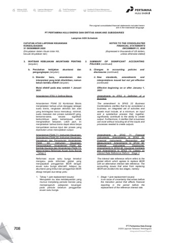 The original consolidated financial statements included hereinare in the Indonesian language.PT PERTAMINA HULU ENERGI DAN ENTITAS ANAK/AND SUBSIDIARIES Lampiran 5/28 ScheduleCATATAN ATAS LAPORAN KEUANGANKONSOLIDASIAN31 DESEMBER 2020(Dinyatakan dalam ribuan dolar AS, kecuali dinyatakan lain)NOTES TO THE CONSOLIDATEDFINANCIAL STATEMENTSDECEMBER 31, 2020(Expressed in thousands of US dollars,unless otherwise stated)3. IKHTISAR KEBIJAKAN AKUNTANSI PENTING(lanjutan)3. SUMMARY OF SIGNIFICANT ACCOUNTINGPOLICIES (continued)b. Perubahan kebijakan akuntansi danpengungkapan (lanjutan)b. Changes in accounting policies anddisclosures (continued)ii. Standar baru, amandemen daninterpretasi yang telah diterbitkan, namunbelum berlaku efektif (lanjutan)ii. New standards, amendments andinterpretations issued but not yet effective(continued)Mulai efektif pada atau setelah 1 Januari2021Effective beginning on or after January 1,2021Amandemen IFRS 3: Definisi Bisnis Amendments to IFRS 3: Definition of aBusinessAmandemen PSAK 22 Kombinasi Bisnismenjelaskan bahwa untuk dianggap sebagaisuatu bisnis, rangkaian aktivitas dan asetyang terintegrasi harus mencakup, minimal,suatu masukan dan proses substantif yang,bersama-sama, secara signifikanberkontribusi pada kemampuan untukmenghasilkan keluaran. Lebih jauh, inimenjelaskan bahwa bisnis dapat eksis tanpamenyertakan semua input dan proses yangdiperlukan untuk menciptakan output.The amendment to SFAS 22 BusinessCombinations clarifies that to be considered abusiness, an integrated set of activities andassets must include, at a minimum, an inputand a substantive process that, together,significantly contribute to the ability to createoutput. Furthermore, it clarifies that a businesscan exist without including all of the inputs andprocesses needed to create outputs.Amandemen PSAK 71: Instrumen Keuangan,Amandemen PSAK 55: Instrumen Keuangan:Pengakuan dan Pengukuran, AmandemenPSAK 60: Instrumen Keuangan:Pengungkapan, Amandemen PSAK 62:Kontrak Asuransi dan Amandemen PSAK 73:Sewa tentang Reformasi Acuan Suku Bunga- Tahap 2Amendments to SFAS 71: FinancialInstruments, Amendments to SFAS 55:Financial Instruments: Recognition andMeasurement, Amendments to SFAS 60:Financial Instruments: Disclosures,Amendments to SFAS 62: Insurance Contractsand Amendments to SFAS 73: Leases onInterest Rate Reference Reform - Stage 2Reformasi acuan suku bunga tersebutmengacu pada reformasi global yangmenyepakati penggantian IBOR denganacuan suku bunga alternatif. Adapun isuakuntansi yang timbul dari penggantian IBORdibagi menjadi dua tahap yaitu:The interest rate reference reform refers to theglobal reform which agrees to replace IBORwith an alternative interest rate reference. Theaccounting issues that arise from replacingIBOR are divided into two stages, namely:1. Tahap 1 (pre-replacement issues)Merupakan isu atas ketidakpastian yangmuncul menjelang periode transisi yangmempengaruhi pelaporan keuanganpada periode sebelum penggantianacuan suku bunga.1. Stage 1 (pre-replacement issues)Is an issue of uncertainty that arises beforethe transition period that affects financialreporting in the period before thereplacement of the reference interest rate.Laporan ManajemenManagement ReportProfil PerusahaanCompany ProfileAnalisa & Diskusi ManajemenManagement Discussion & AnalysisIkhtisar 20202020 HighlightsPT Pertamina Hulu Energi2020 Laporan Tahunan TerintegrasiIntegrated Annual Report 708
