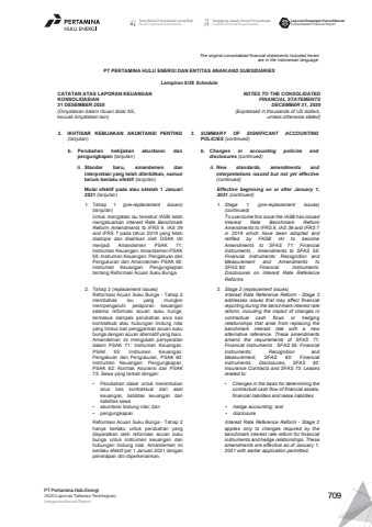 The original consolidated financial statements included hereinare in the Indonesian language.PT PERTAMINA HULU ENERGI DAN ENTITAS ANAK/AND SUBSIDIARIES Lampiran 5/29 ScheduleCATATAN ATAS LAPORAN KEUANGANKONSOLIDASIAN31 DESEMBER 2020(Dinyatakan dalam ribuan dolar AS, kecuali dinyatakan lain)NOTES TO THE CONSOLIDATEDFINANCIAL STATEMENTSDECEMBER 31, 2020(Expressed in thousands of US dollars,unless otherwise stated)3. IKHTISAR KEBIJAKAN AKUNTANSI PENTING(lanjutan)3. SUMMARY OF SIGNIFICANT ACCOUNTINGPOLICIES (continued)b. Perubahan kebijakan akuntansi danpengungkapan (lanjutan)b. Changes in accounting policies anddisclosures (continued)ii. Standar baru, amandemen daninterpretasi yang telah diterbitkan, namunbelum berlaku efektif (lanjutan)ii. New standards, amendments andinterpretations issued but not yet effective(continued)Mulai efektif pada atau setelah 1 Januari2021 (lanjutan)Effective beginning on or after January 1,2021 (continued)1. Tahap 1 (pre-replacement issues)(lanjutan)Untuk mengatasi isu tersebut IASB telahmengeluarkan Interest Rate BenchmarkReform Amendments to IFRS 9, IAS 39and IFRS 7 pada tahun 2019 yang telahdiadopsi dan disahkan oleh DSAK IAImenjadi Amandemen PSAK 71:Instrumen Keuangan, Amandemen PSAK55: Instrumen Keuangan: Pengakuan danPengukuran dan Amandemen PSAK 60:Instrumen Keuangan: Pengungkapantentang Reformasi Acuan Suku Bunga.1. Stage 1 (pre-replacement issues)(continued)To overcome this issue the IASB has issuedInterest Rate Benchmark ReformAmendments to IFRS 9, IAS 39 and IFRS 7 in 2019 which have been adopted andratified by FASB IAI to becomeAmendments to SFAS 71: FinancialInstruments , Amendments to SFAS 55:Financial Instruments: Recognition andMeasurement and Amendments toSFAS 60: Financial Instruments:Disclosures on Interest Rate ReferenceReforms2. Tahap 2 (replacement issues)Reformasi Acuan Suku Bunga - Tahap 2membahas isu yang mungkinmempengaruhi pelaporan keuanganselama reformasi acuan suku bunga,termasuk dampak perubahan arus kaskontraktual atau hubungan lindung nilaiyang timbul dari penggantian acuan sukubunga dengan acuan alternatif yang baru.Amandemen ini mengubah persyaratandalam PSAK 71: Instrumen Keuangan,PSAK 55: Instrumen Keuangan:Pengakuan dan Pengukuran, PSAK 60:Instrumen Keuangan: Pengungkapan,PSAK 62: Kontrak Asuransi dan PSAK73: Sewa yang terkait dengan:2. Stage 2 (replacement issues)Interest Rate Reference Reform - Stage 2addresses issues that may affect financialreporting during the benchmark interest ratereform, including the impact of changes incontractual cash flows or hedgingrelationships that arise from replacing thebenchmark interest rate with a newalternative reference. These amendmentsamend the requirements of SFAS 71:Financial Instruments , SFAS 55: FinancialInstruments: Recognition andMeasurement, SFAS 60: FinancialInstruments: Disclosures, SFAS 62:Insurance Contracts and SFAS 73: Leasesrelated to:%u2022 Perubahan dasar untuk menentukanarus kas kontraktual dari asetkeuangan, liabilitas keuangan danliabilitas sewa%u2022 Changes in the basis for determining thecontractual cash flow of financial assets,financial liabilities and lease liabilities%u2022 akuntansi lindung nilai; dan%u2022 pengungkapan.%u2022 hedge accounting; and%u2022 disclosure.Reformasi Acuan Suku Bunga - Tahap 2hanya berlaku untuk perubahan yangdisyaratkan oleh reformasi acuan sukubunga untuk instrumen keuangan danhubungan lindung nilai. Amandemen iniberlaku efektif per 1 Januari 2021 denganpenerapan dini diperkenankan.Interest Rate Reference Reform - Stage 2applies only to changes required by thebenchmark interest rate reform for financialinstruments and hedge relationships. Theseamendments are effective as of January 1,2021 with earlier application permitted.Tata Kelola Perusahaan yang BaikGood Corporate GovernanceTanggung Jawab Sosial PerusahaanCorporate Social ResponsibilityLaporan Keuangan KonsolidasianConsolidated Financial ReportPT Pertamina Hulu Energi2020 Laporan Tahunan TerintegrasiIntegrated Annual Report 709