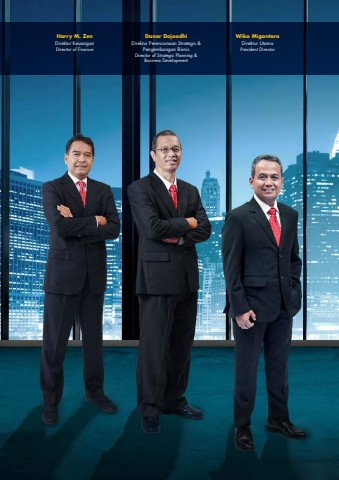 Wiko MigantoroDirektur Utama President DirectorDanar DojoadhiDirektur Perencanaan Strategis & Pengembangan BisnisDirector of Strategic Planning & Business DevelopmentHarry M. ZenDirektur KeuanganDirector of Finance