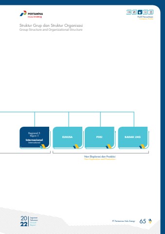 PT Pertamina Hulu Energi 65 2022Laporan TahunanAnnual ReportProfil PerusahaanCompany ProfileRegional 5Region 5InternasionalInternationalELNUSA PDSI BADAK LNGNon Eksplorasi dan ProduksiNon Exploration and ProductionGroup Structure and Organizational StructureStruktur Grup dan Struktur Organisasi