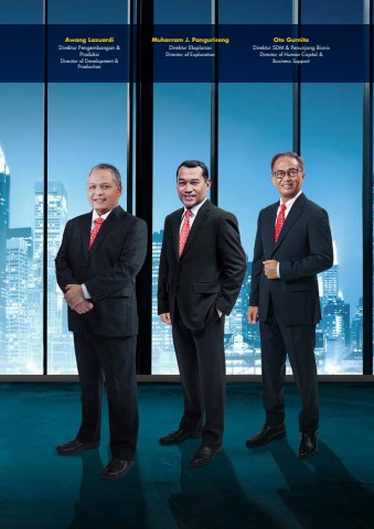 Muharram J. PangurisengDirektur EksplorasiDirector of ExplorationAwang LazuardiDirektur Pengembangan & Produksi Director of Development & ProductionOto GurnitaDirektur SDM & Penunjang BisnisDirector of Human Capital & Business Support