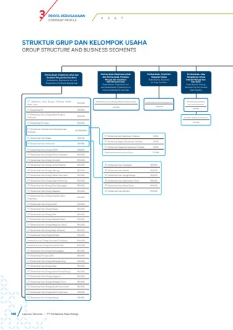 138PT Pertamina Hulu Energi Arun99,997%STRUKTUR GRUP DAN KELOMPOK USAHAGROUP STRUCTURE AND BUSINESS SEGMENTSEntitas Anak, Eksplorasi untuk danProduksi Minyak dan Gas BumiSubsidiaries, Exploration for andProduction of Oil and Natural GasEntitas Anak, Eksplorasi untuk dan Entitas Anak, Produksi Minyak dan Gas Bumi Non-KonvensionalSubsidiaries, Exploration for and Subsidiaries, Production of Unconventional Oil and GasEntitas Anak, Portofolio Kegiatan UsahaSubsidiaries, Business Activity PortfolioEntitas Anak, Jasa Pengeboran untuk Industri Minyak dan Gas BumiSubsidiaries, Drilling Services for the Oil and Gas IndustryPT Pertamina Hulu Energi Offshore North West Java 99,00%PT Pertamina EP 99,99%PT Pertamina Hulu Energi West Madura Offshore 99,00%PT Pertamina EP Cepu 99,00%PT Pertamina Internasional Eksplorasi dan Produksi 99,999998%PT Pertamina Hulu Rokan 99,87%PT Pertamina Hulu Indonesia 99,93%PT Pertamina Hulu Energi OSES 99,90%PT Pertamina Hulu Energi Tomori Sulawesi 99,00%PT Pertamina Hulu Energi Corridor 99,00%PT Pertamina Hulu Energi Jambi Merang 99,00%PT Pertamina Hulu Energi Jabung 99,00%PT Pertamina Hulu Energi Tuban East Java 99,00%PT Pertamina Hulu Energi Ogan Komering 99,00%PT Pertamina Hulu Energi East Sepinggan 99,00%PT Pertamina Hulu Energi Salawati 99,00%PT Pertamina Hulu Energi Coastal Plains Pekanbaru 99,00%PT Pertamina Hulu Energi NSO 99,00%PT Pertamina Hulu Energi Kakap 99,00%PT Pertamina Hulu Energi Siak 99,00%PT Pertamina Hulu Energi Salawati Basin 99,00%PT Pertamina Hulu Energi Makassar Strait 99,00%PT Pertamina Hulu Energi Raja Tempirai 99,00%PT Pertamina Hulu Energi Kampar 99,00%Pertamina Hulu Energi Nunukan Company 100,00%Pertamina Hulu Energi Oil and Gas B.V 100,00%PT Pertamina Hulu Energi Simenggaris 99,00%PT Pertamina EP Cepu ADK 99,00%PT Pertamina Hulu Energi Randugunting 99,00%PT Pertamina Hulu Energi Abar 99,00%PT Pertamina Hulu Energi Lepas Pantai Bunyu 99,00%PT Pertamina Hulu Energi Anggursi - 99,00%PT Pertamina Hulu Energi Ambalat Timur 99,00%PT Pertamina Hulu Energi South East Jambi 99,00%PT Pertamina Hulu Energi North East Java 99,99%PT Pertamina Hulu Energi Masela 99,99%PT Pertamina Hulu Mahakam 99,93%PT Pertamina Hulu Attaka 99,00%PT Pertamina Hulu Sanga Sanga 99,00%PT Pertamina Hulu Kalimantan Timur 99,00%PT Pertamina Hulu West Ganal 99,00%PT Pertamina Hulu Borneo 99,00%PT Pertamina Hulu Energi MNK Sumatera Utara99,50%PT Pertamina Drilling Services Indonesia99,96%PT Patra Drilling Contractor99,96%PT Pertamina Irak Eksplorasi Produksi 100%PT Pertamina Algeria Eksplorasi Produksi 100%PT Pertamina Malaysia Eksplorasi Produksi 100%Etablissments Maurel et Prom 71,09%Laporan Tahunan %u2022 PT Pertamina Hulu EnergiPROFIL PERUSAHAANCOMPANY PROFILE 3 4 5 6 7