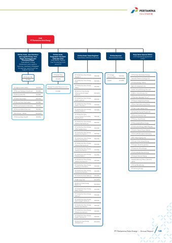 PHEPT Pertamina Hulu EnergiPT Elnusa TbkBadak Chiyoda Enerproco LLCPT Pertamina Hulu Energi Tengah K 99,00%PT Pertamina Hulu Energi NSB 99,50%PT Pertamina Hulu Energi Tuban 99,90%Pertamina Hulu Energi Offshore North West Java Llc.100,00%PT Pertamina Hulu Energi South Jambi B 99,00%PT Pertamina Hulu Energi Metan Tanjung II 99,90%PT Pertamina Hulu Energi Metana Suban II 99,90%PT Pertamina Hulu Energi Metana Sumatera Tanjung Enim99,00%PT Pertamina Hulu Energi Metana Kalimantan A 99,00%PT Pertamina Hulu Energi MNK Sakakemang 99,00%PT Pertamina Hulu Energi Metana Sumatera 7 99,50%PT Pertamina Hulu Energi Metana Sumatera 4 99,00%PT Pertamina Hulu Energi Metana Kalimantan B 99,00%PT Pertamina Hulu Energi Metana Sumatera 1 99,90%PT Pertamina Hulu Energi Metana Suban I 99,90%PT Pertamina Hulu Energi Metana Sumatera 3 99,50%PT Pertamina Hulu Energi Gebang N Sumatera 99,00%PT Pertamina Hulu Energi Metana Sumatera 6 99,50%PT Pertamina East Natuna 99,90%P E&P Libya Ltd 100,00%Pertamina Hulu Energi Bukat Ltd 100,00%PT Pertamina Hulu Energi Babar Selaru 99,50%PT Pertamina Hulu Energi Semai II 99,00%PT Pertamina Hulu Energi West Glagah Kambuna 99,00%PT Pertamina Hulu Energi Metana Sumatera 2 99,00%PT Pertamina Hulu Energi Metana Sumatera 5 99,90%PT Pertamina Hulu Energi Metan Tanjung IV 99,90%Pertamina Hulu Energi Ambalat Ltd. 100,00%PT Donggi Senoro LNG 29,00%Seplat 20,46%PT Formasi Sumatera EnergyGasindo Makmur Energy Ltd.PT Petroenergy UtamaBass Oil Sukananti Ltd.Foster Oil and Energy Pte. Ltd*Indrillco Hulu Energy Ltd.PT Techwin Benakat Timur**PT Tawun Gegunung EnergiPT Axis Sambidoyong EnergiPT QEI Loyak Talang GulaGunung Kampung Minyak Ltd.PT Energi Tanjung TigaPT Bunyu Tapa EnergiPT Banyubang Blora EnergiPT Samudra Energy BWP MeruapPT Petro Papua Mogoi WasianPT Alt GME Bungalun Kariorang RMH Tebat Agung Ltd.PT Aceh Timur Kawai EnergiPT Green World NusantaraPT Karavan Prima EnergiPT Estu Barata Naca Energi PT Deras Perenial EnergiPrakarsa Betung Meruo Senarmi Jambi PT Kvell BloraEnergiPT Tamiang Energi51,00%Entitas Anak, Jasa Distribusi dan Logistik Energi, Hulu Migas Terintegrasi dan Penunjang MigasSubsidiaries, Energy Distribution and Logistics Services, Upstream Integrated Oil and Gas, and Oil and Gas Support ServicesEntitas AsosiasiAssociated EntitiesKerja Sama Operasi (KSO)Joint Operating Agreement (JOA)Entitas Anak Tanpa KegiatanSubsidiaries Without ActivitiesEntitas Anak, Pengolahan Gas Alam (LNG dan LPG)Subsidiaries, Natural Gas Processing (LNG and LPG)51,10%PT Sigma Cipta Utama 99,99%PT Elnusa Fabrikasi Konstruksi 99,98%PT Elnusa Petrofin 99,98%PT Patra Nusa Data 99,50%PT Elnusa Trans Samudera 99,58%PT Elnusa Geosains Indonesia 99,99%PT Elnusa Oilfield Services 99,99%KSO Elnusa - RAGA 100,00%PT Elnusa Daya Kreatif 99,99%PT Badak NGL55,00%PT Pertamina Hulu Energi %u2022 Annual Report 139