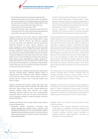 %u2022 Pemanfaatan Existing Assets dan Ekspansi pada Blok Baru:Mengejar peluang potensi Existing Assets dalam mendapatkan temuan besar (big fish) dan menggali peluang eksplorasi blokbaru, baik di dalam maupun luar negeri, dengan target minimal2 WK per tahun yang memiliki potensi giant discovery.%u2022 Implementasi Fast Track Exploration (FTE):Memastikan komitmen dalam menerapkan proses bisnis Fast Track Exploration (FTE) untuk mempercepat tahapan eksplorasi secara efisien dan responsif terhadap peluang pasar.Terdapat tambahan 2C dari sumur discovery sebesar 239,93 MMBOE yang diperoleh dari South East Mandala (SEM)-1, Sungai Rotan (SRT)-1, NSO-R2, NSO-S2, dan NSO-XLLL (Regional 1); Sumur East Akasia Cinta (EAC)-001 dan East Pondok Aren (EPN)-001 (Regional 2); Sumur Helios-1, Adiwarna-1 dan Polaris-1 (Regional 3); Sumur Kembo (KMO)-001 dan East Wolai (EWO)-001 (Regional 4); sumur FB3N, Mong Merah, Hikmat dan Dermawan (Regional 5). Sementara tambahan 2C dari hasil studydan reassessment sebesar 248,22 MMBOE diperoleh dari struktur Mindal Emas (Regional 1), North Zelda, Krisna, Hana, Sumi, Tambun Kelapa, SC-4, KL-3 dan Janti (Regional 2), Serban, Dian, Pemarung, Ragat, Offshore Bunyu Barat-OBB dan Manpatu (Regional 3), Mogoi Deep (Regional 4), dan D9-1 (Regional 5). Terdapat 3 (tiga) temuan big fish dari pengeboran sumur eksplorasi yang dicatatkan di tahun 2023 yaitu dari sumur NSO-R2, East Akasia Cinta (EAC)-001 dan East Pondok Aren (EPN)-001. Perusahaan juga terus melakukan eksplorasi pada setiap potensi yang ada, termasuk dengan melakukan kegiatan seismik. Di sepanjang tahun 2023, Perusahaan telah melakukan melakukan survei seismik 3D seluas 1.512 km2 dengan sebaran 497 km2 di Sumatra, 244 km2 di Jawa, 576 km2 di perairan Sebatik, serta 196 km2 di Papua.Eksplorasi terhadap semua potensi sumber daya migas terus dilakukan dengan harapan dapat memberikan nilai tambah bagi pemenuhan target produksi yang akan menjaga keberlanjutan keamanan pasokan energi untuk Indonesia. PHE sebagai Subholding Upstream Pertamina akan terus mengembangkan pengelolaan operasi di dalam dan luar negeri secara profesional untuk mewujudkan pencapaian menjadi perusahaan minyak dan gas bumi kelas dunia.Strategi yang dilakukan untuk menjaga tingkat produksi migas di antaranya sebagai berikut: 1. Pengelolaan kegiatan pemeliharaan Perusahaan yangmeliputi perbaikan dan modifikasi fasilitas, operasional infill development drilling dan well work, serta pengelolaan kegiatan shutdown terencana diantaranya adalah minimalisasi shutdowntidak terencana, penyusunan target, monitoring, serta optimasi produk minyak dan gas.%u2022 Utilization of Existing Assets and Expansion into New Blocks:Pursuing potential opportunities of Existing Assets to obtainsignificant discoveries (big fish) and exploring opportunities innew blocks, both domestically and internationally, with minimumtarget of 2 the Rokan Block per year with potential giant discovery.%u2022 Implementation of Fast Track Exploration (FTE):Ensuring commitment in implementing the Fast TrackExploration (FTE) business process to accelerate explorationstages efficiently and be responsive to market opportunities.There were additional 2C from discovery wells amounted to 239.93 MMBOE obtained from South East Mandala (SEM)-1, Sungai Rattan (SRT)-1, NSO-R2, NSO-S2, and NSO-XLLL (Regional 1); East Akasia Cinta (EAC)-001 and East Pondok Aren (EPN)-001 (Regional 2)wells; Helios-1, Adiwarna-1 and Polaris-1 wells (Regional 3); Kembo (KMO)-001 and East Wolai (EWO)-001 (Regional 4) wells; FB3N wells, Red Wong, Wisdom and Benefactor (Regional 5). Meanwhile, additional 2C from the study and reassessment results totaled 248.22 MMBOE was obtained from the structure of Mindal Emas (Regional 1), North Zelda, Krisna, Hana, Sumi, Tambun Kelapa, SC4, KL-3 and Janti (Regional 2), Serban, Dian, Pemarung, Ragat, Offshore Bunyu Barat-OBB and Manpatu (Regional 3), Mogoi Deep (Regional 4), and D9-1 (Regional 5). There are 3 (three) big fish findings from exploration well drilling reached in 2023, namely NSO-R2 well, East Akasia Cinta (EAC)-001 and East Pondok Aren (EPN)-001.The Company also continues to explore every potential opportunity, including conducting seismic activities. Throughout 2023, the Company conducted 3D seismic surveys covering an area of 1,512 km2, with distribution of 497 km2 in Sumatra, 244 km2 in Java, 576 km2 in the Sebatik waters, and 196 km2 in Papua.Exploration continuous for all oil and gas resource potentials in the expectation of providing value added in achieving production targets to maintain sustainability of energy supply for Indonesia. PHE as Pertamina%u2019s Subholding Upstream will continue to develop management of domestic and foreign operations professionally to realize the goal of becoming a world-class oil and gas company.Strategies carried out to maintain oil and gas production levels include the following: 1. Management of the Company%u2019s maintenance activities whichinclude repair and modification of facilities, operational infilldevelopment drilling and well work, as well as managementof planned shutdown activities including minimization ofunplanned shutdowns, targets preparation, monitoring, andoptimization of oil and gas products.158 Laporan Tahunan %u2022 PT Pertamina Hulu EnergiPEMBAHASAN DAN ANALISIS MANAJEMENMANAGEMENT DISCUSSION AND ANALYSIS 4 5 6 7
