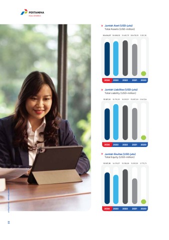 30.434,97 30.888,92 31.481,79 28.478,59 5.321,362024 2023 2022 2021 202015.327,61 16.710,35 16.323,51 15.087,00 2.547,642024 2023 2022 2021 202015.107,36 14.178,57 15.158,28 13.391,59 2.773,732024 2023 2022 2021 2020Jumlah Aset (USD-juta)Total Assets (USD-million)Jumlah Liabilitas (USD-juta)Total Liability (USD-million)Jumlah Ekuitas (USD-juta)Total Equity (USD-million)Laporan Tahunan %u2022 Annual Report 22PT Pertamina Hulu Energi 23HULU ENERGI