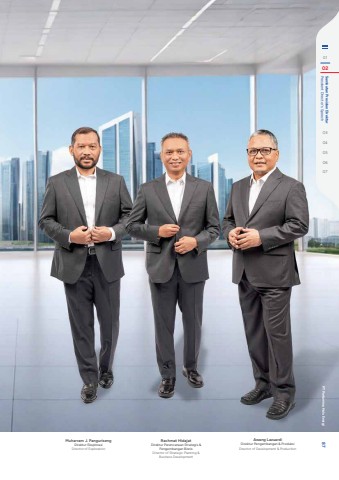 Awang LazuardiDirektur Pengembangan & ProduksiDirector of Development & ProductionMuharram J. PangurisengDirektur EksplorasiDirector of ExplorationRachmat HidajatDirektur Perencanaan Strategis & Pengembangan BisnisDirector of Strategic Planning & Business Development0102 Presdent Director's Speech Sambutan Presiden Direktur0304050607 PT Pertamina Hulu Energi 87