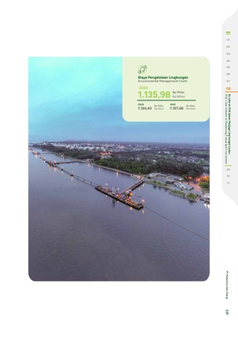 Biaya Pengelolaan Lingkungan Environmental Management Costs 20241.135,9820231.134,4320211.157,66 Rp MiliarRp BillionRp MiliarRp BillionRp MiliarRp Billion0102030405060708 PHE's Commitment to Maintaining Sustainable Environment Komitmen PHE dalam Menjaga Lingkungan Lestari091011 PT Pertamina Hulu Energi 227